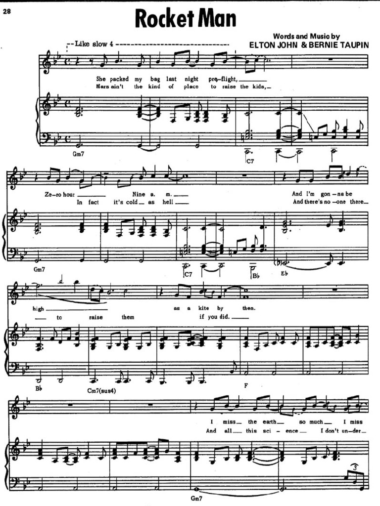 Download Rocket Man Piano Accompaniment Sheet Music Background. Sheet music arranged for piano/vocal/guitar in bb major (transposable). How to play the piano accompaniment of your song by elton john.