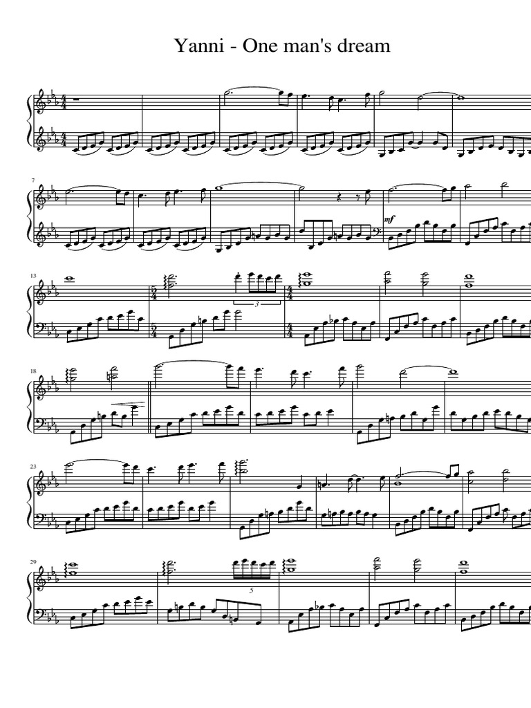 The song one man's dream was released in the united states on her album in my time in april 1993 as track number 3. One man's dream is a song by the greek pianist, keyboardist, composer, and music producer yanni from the album yanni live at the acropolis, both an album and video recorded live at the herodes atticus theatre, athens, greece, on september 25, 1993, and released in 1994. Enjoy an unrivalled sheet music experience for ipad—sheet music viewer, score library and music store all in one app. Free piano sheet music on the web: